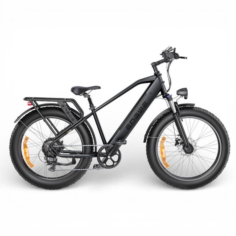 ENGWE E26 on monipuolinen ja tehokas sähköfatbike, joka soveltuu erinomaisesti sekä kaupunkiajoon että maastoon. 26 x 4.0 tuuman leveät renkaat, jousitettu etuhaarukka ja vakaa runko takaavat mukavan ajokokemuksen myös epätasaisilla alustoilla.