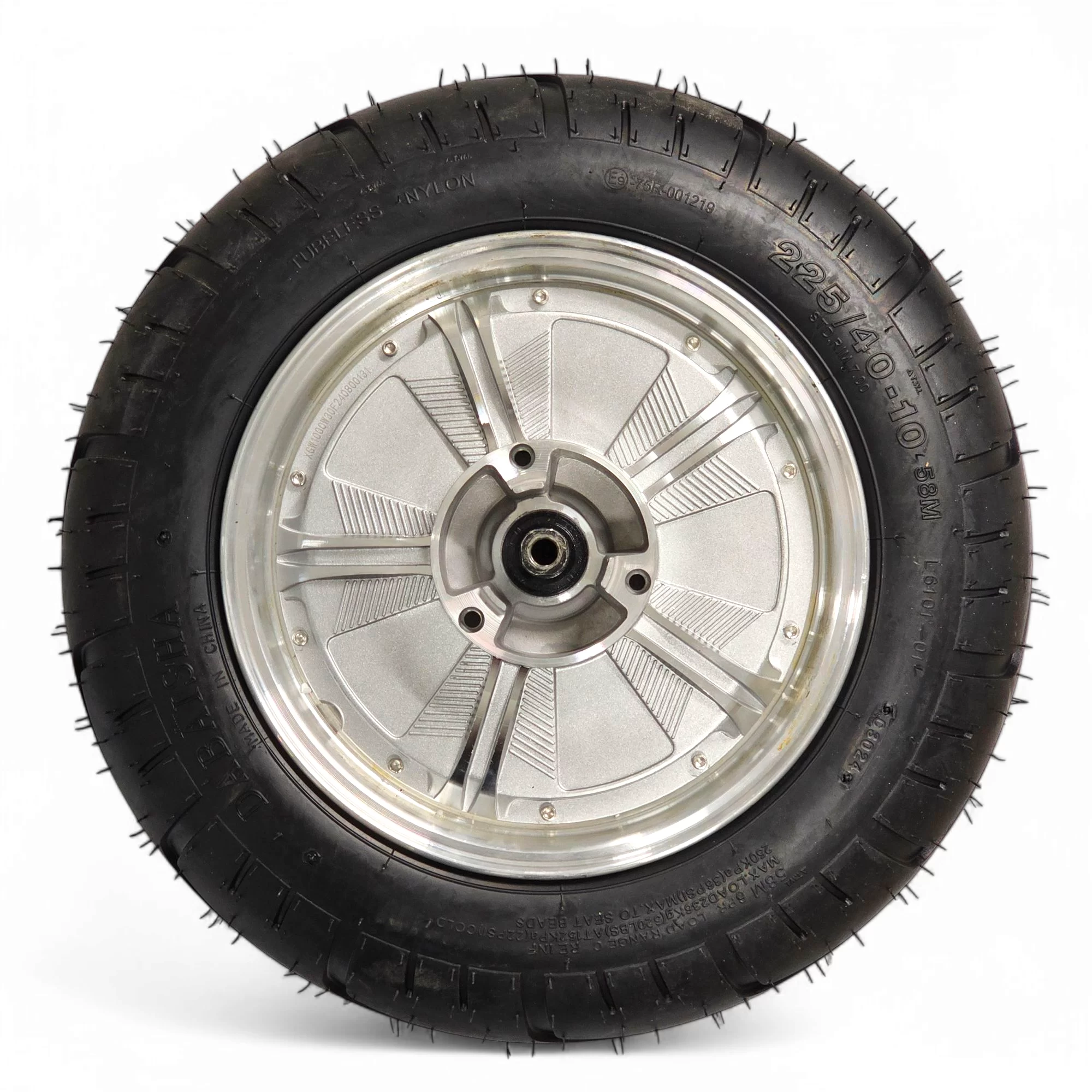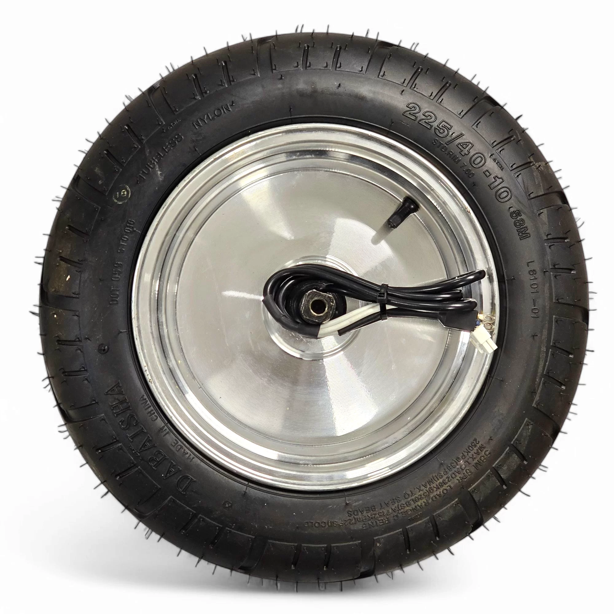 Ego Evolution sähköskootterin takavanne jossa 1000W/60V harjaton sähkömoottori. Rengas sisältyy toimitukseen.
