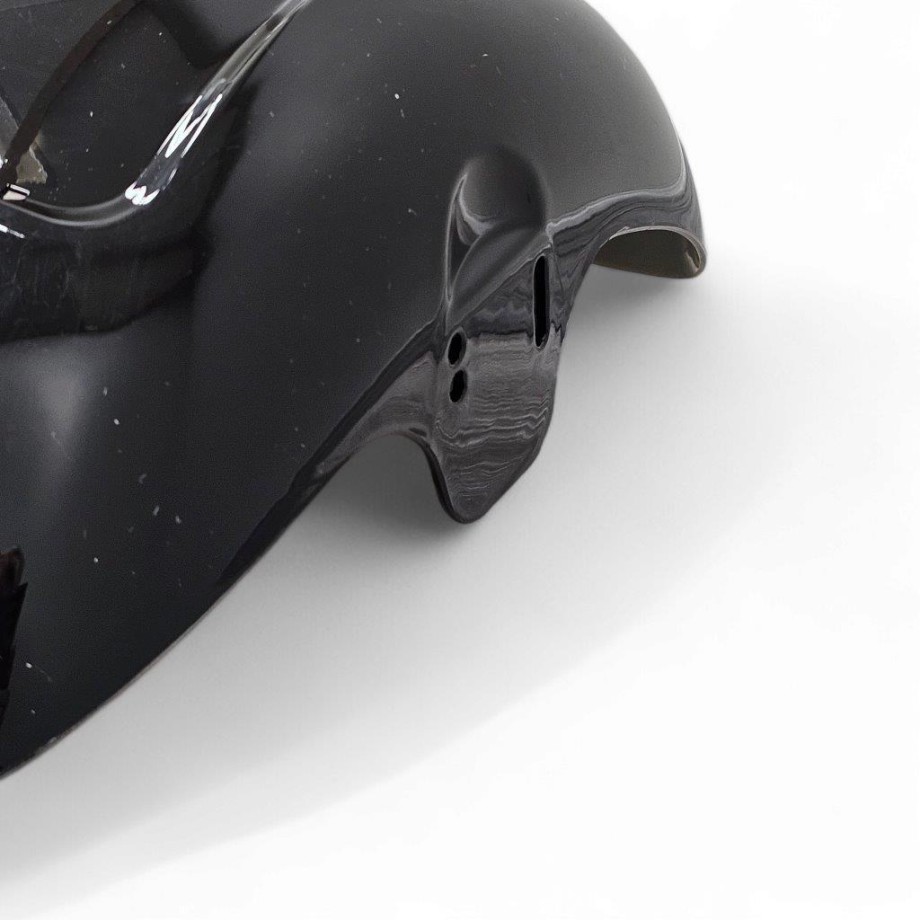 Pokattu lokasuoja kestää tärinää ja ajoa hyvin. Kiiltävä musta väri on tyylikäs.