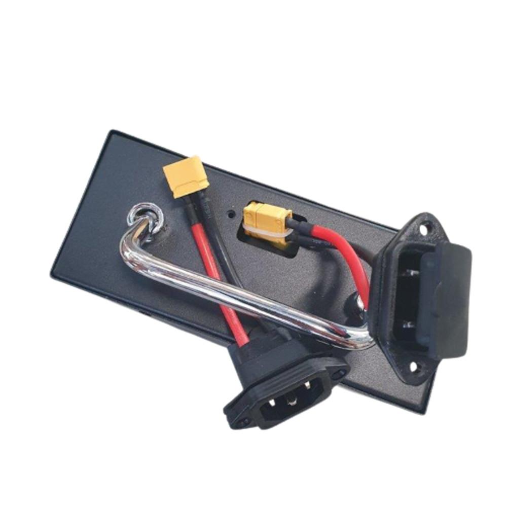 Latausliitin sähköskootteriin, sopii useisiin eri malleihin. Tarkoitettu viallisten latausliittimien vaihtoon tai erillisen latausportin toteuttamiseen, esimerkiksi kahden akun järjestelmissä.