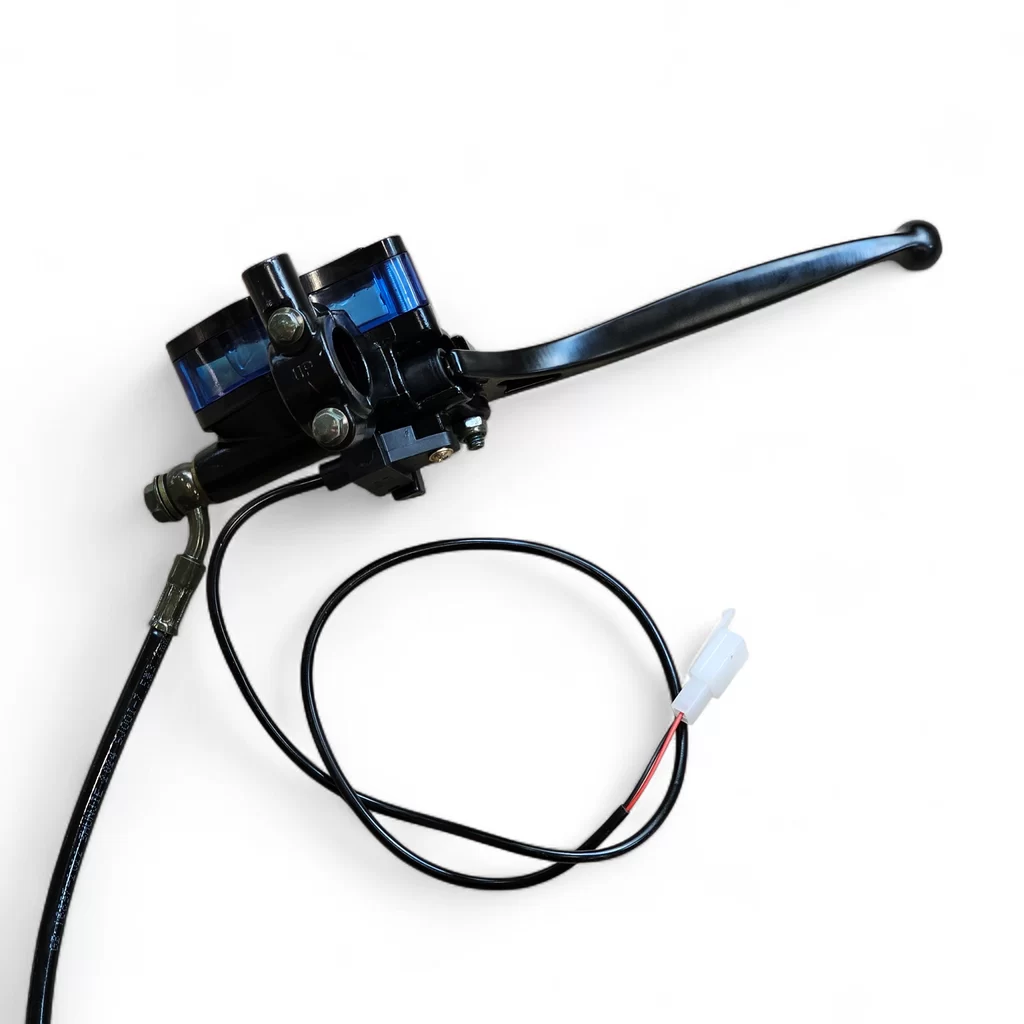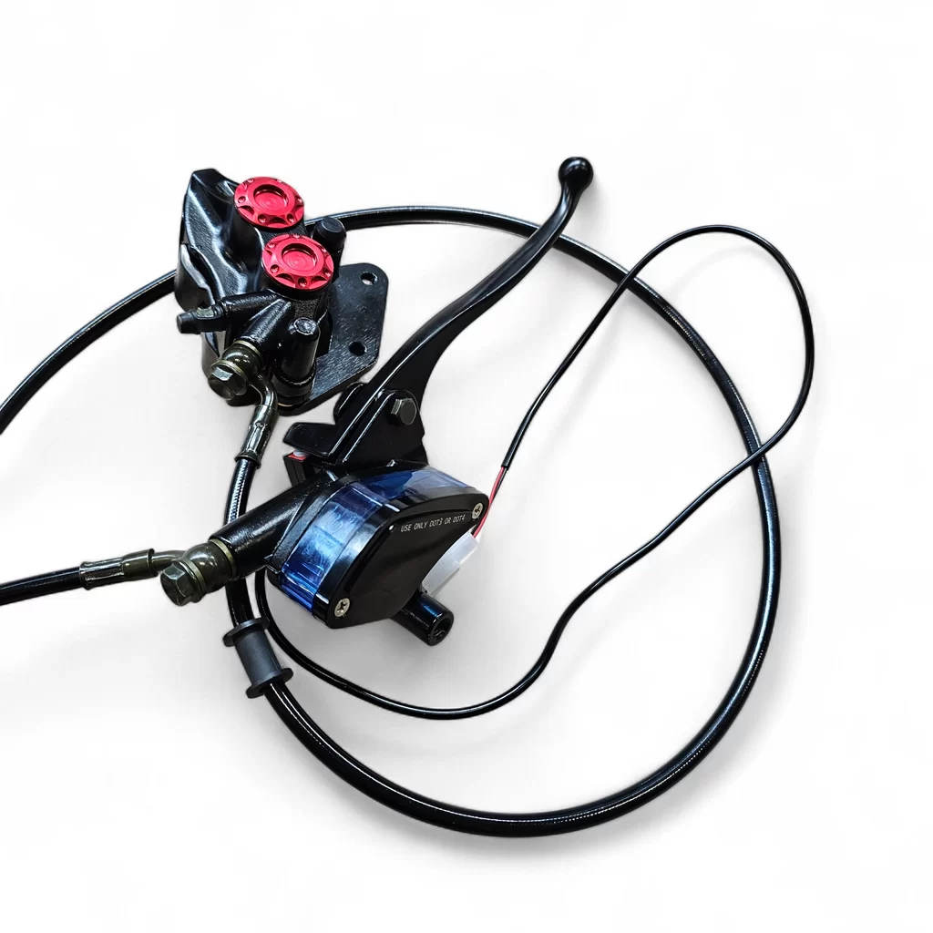 E-go Royal sähköskootteriin sopiva täydellinen jarrusetti. Paketti sisältää jarrusatulan, jarrupalat, jarrukahvan, jarruletkun sekä johtosarjan.